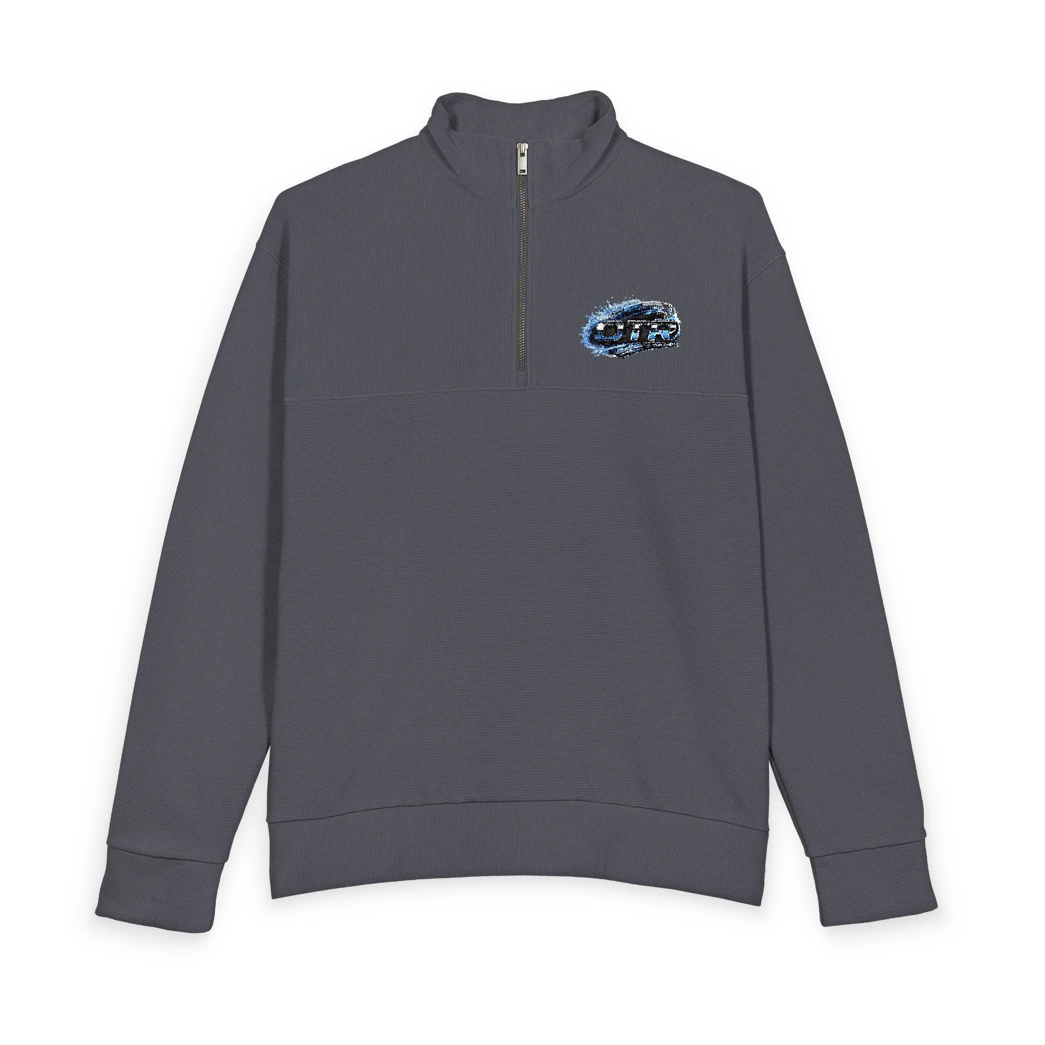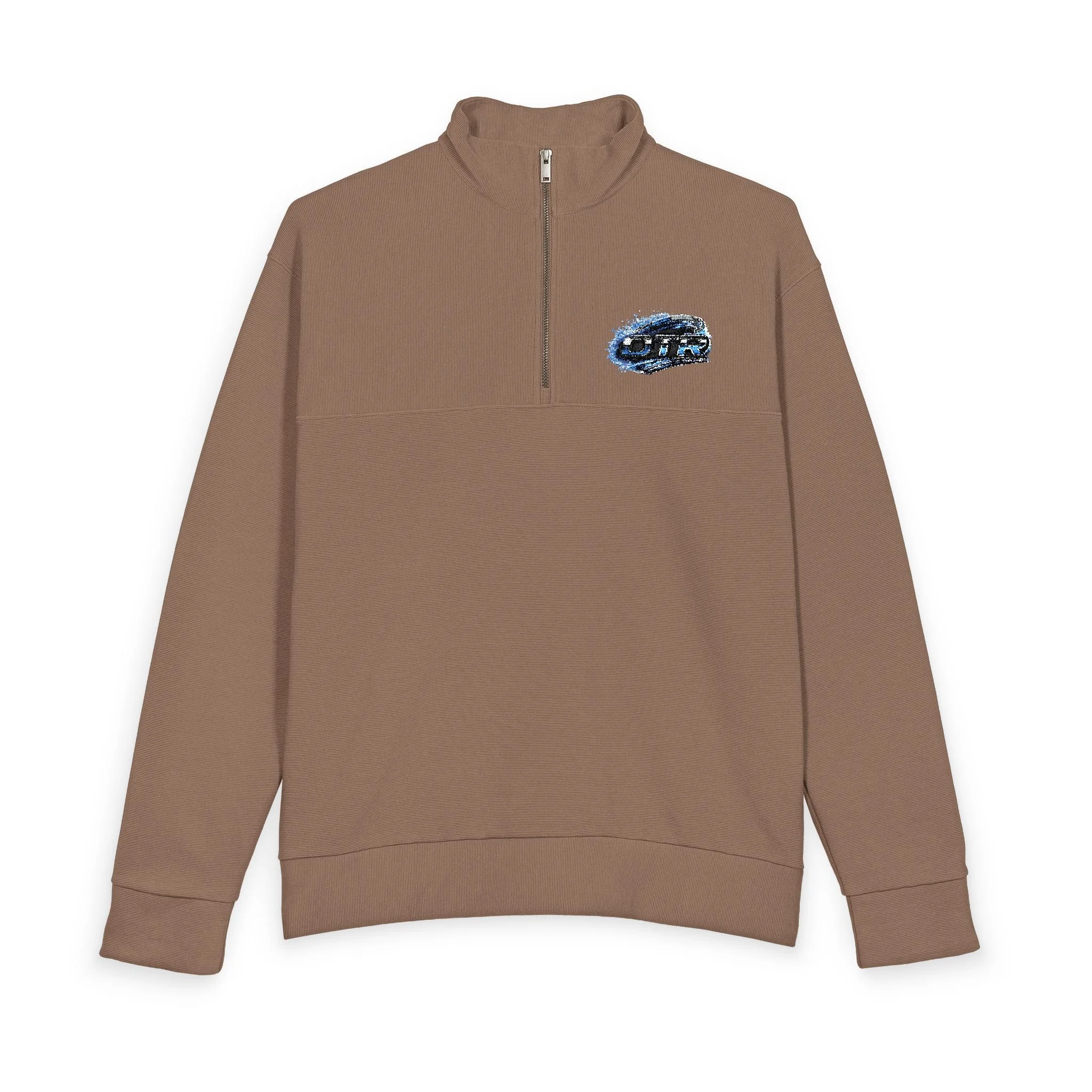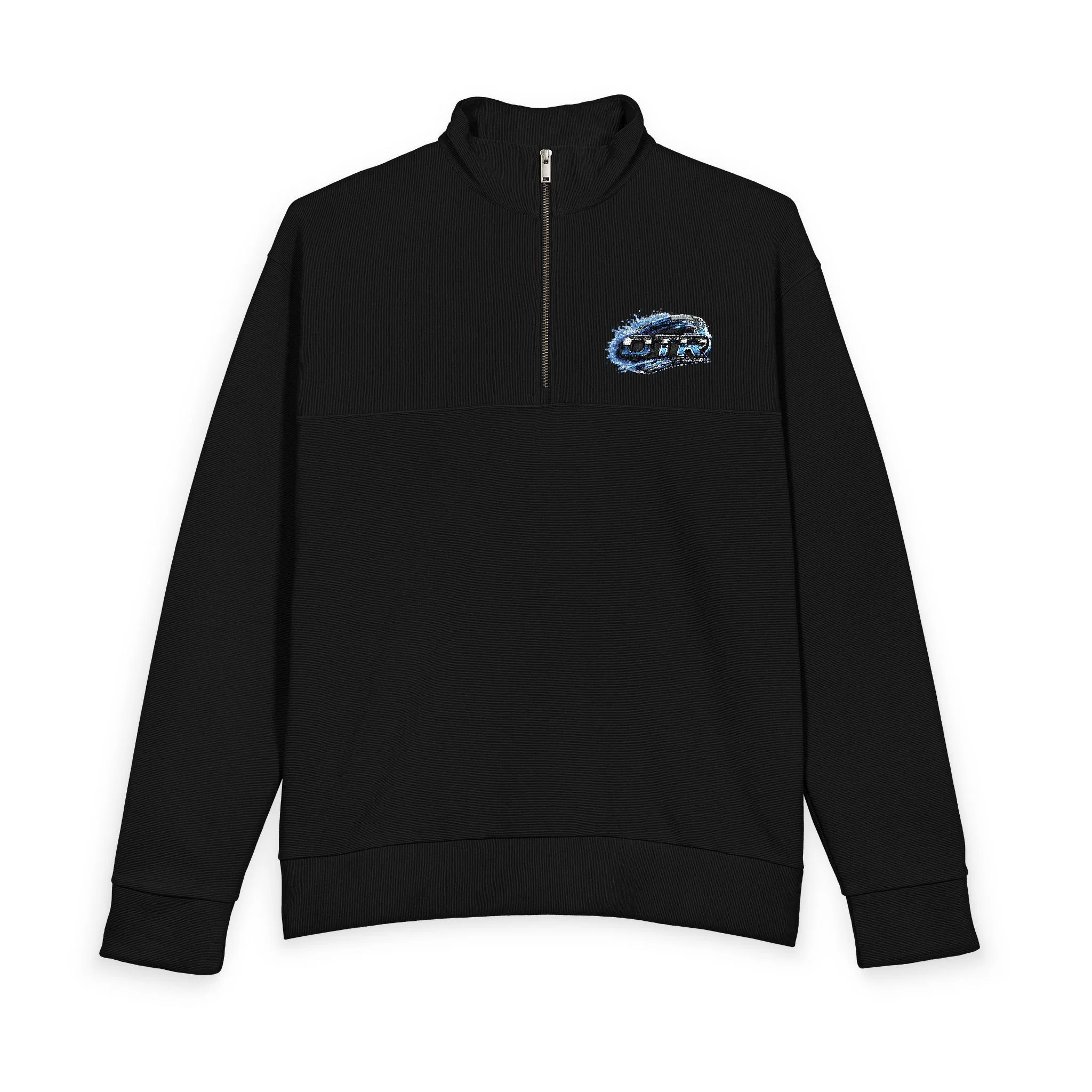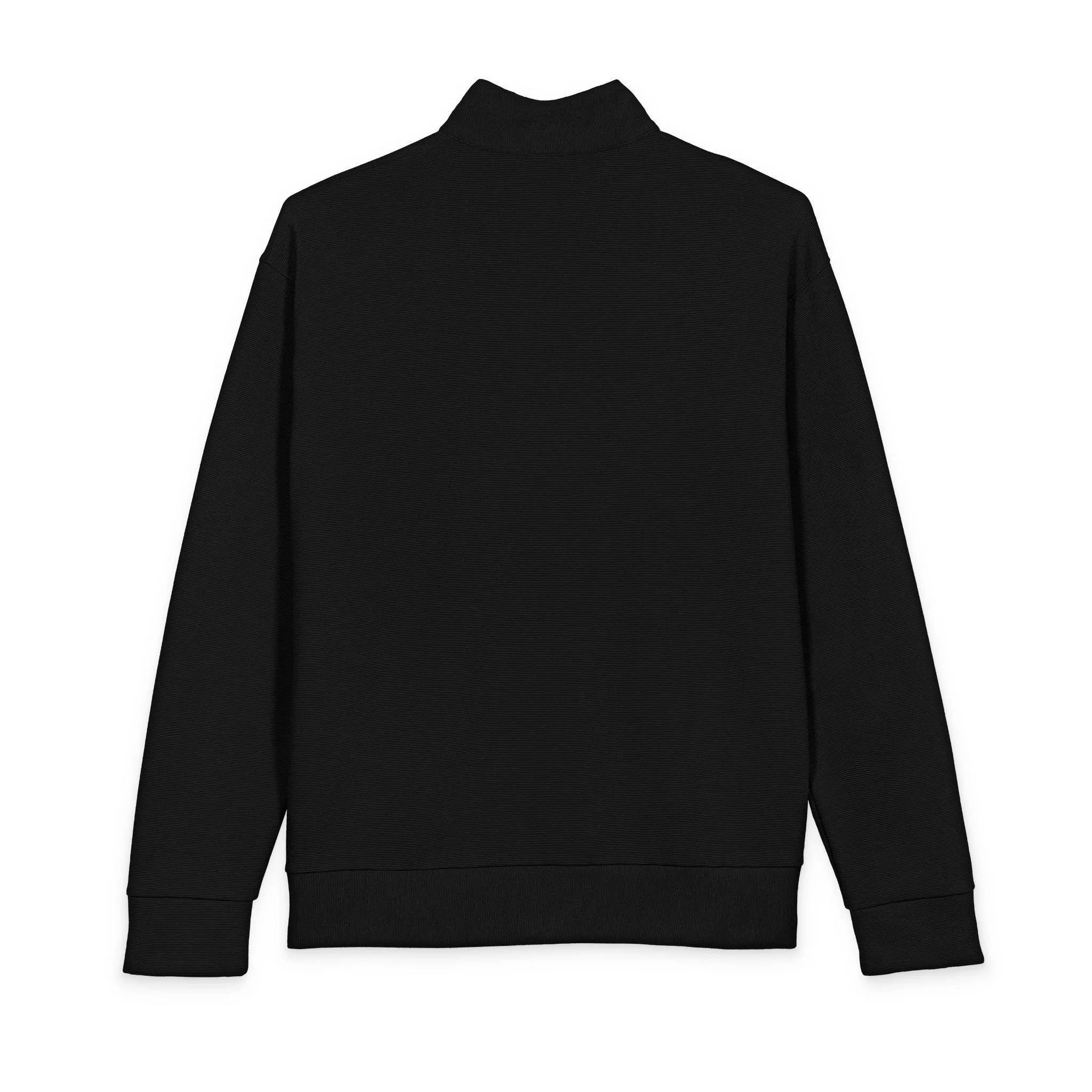 Men's Black Quarter-Zip Pullover — Blue Abstract Patch Chest Logo